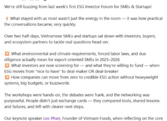 VNF sincerely appreciates the insights shared by Raise Partners and the co-organizers in creating the ESG Investor Forum for SMEs & Startups 2026 – a forum centered on frank, practical discussions as ESG requirements become more concrete and time-bound for SMEs and startups.What we valued most was not only the energy of the event, but […]